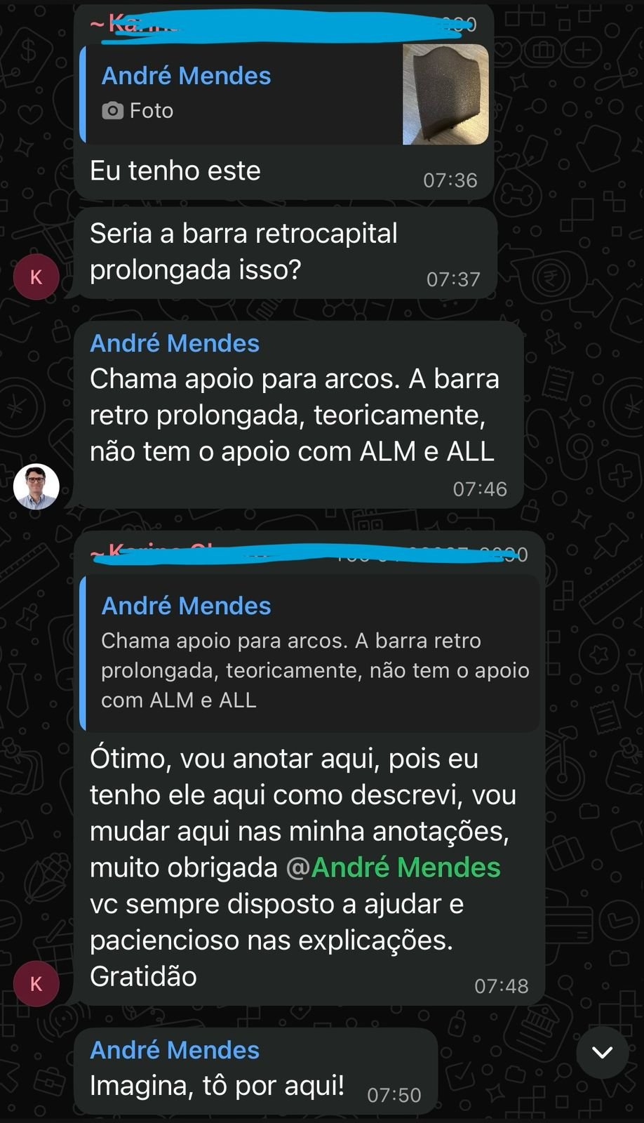 O curso é estruturado para facilitar sua evolução rápida com suporte diário em grupo exclusivo no WhatsApp, onde você pode compartilhar casos e receber opiniões de diversos profissionais da área, incluindo a participação direta do seu mentor, André Mendes, nas discussões.
